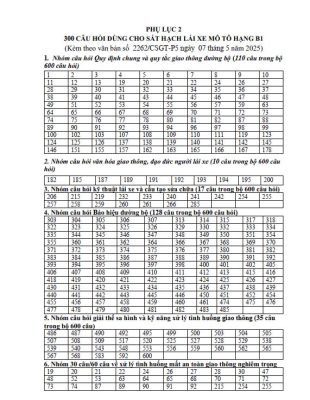 Bố cục bộ 600 câu hỏi sát hạch lái xe: